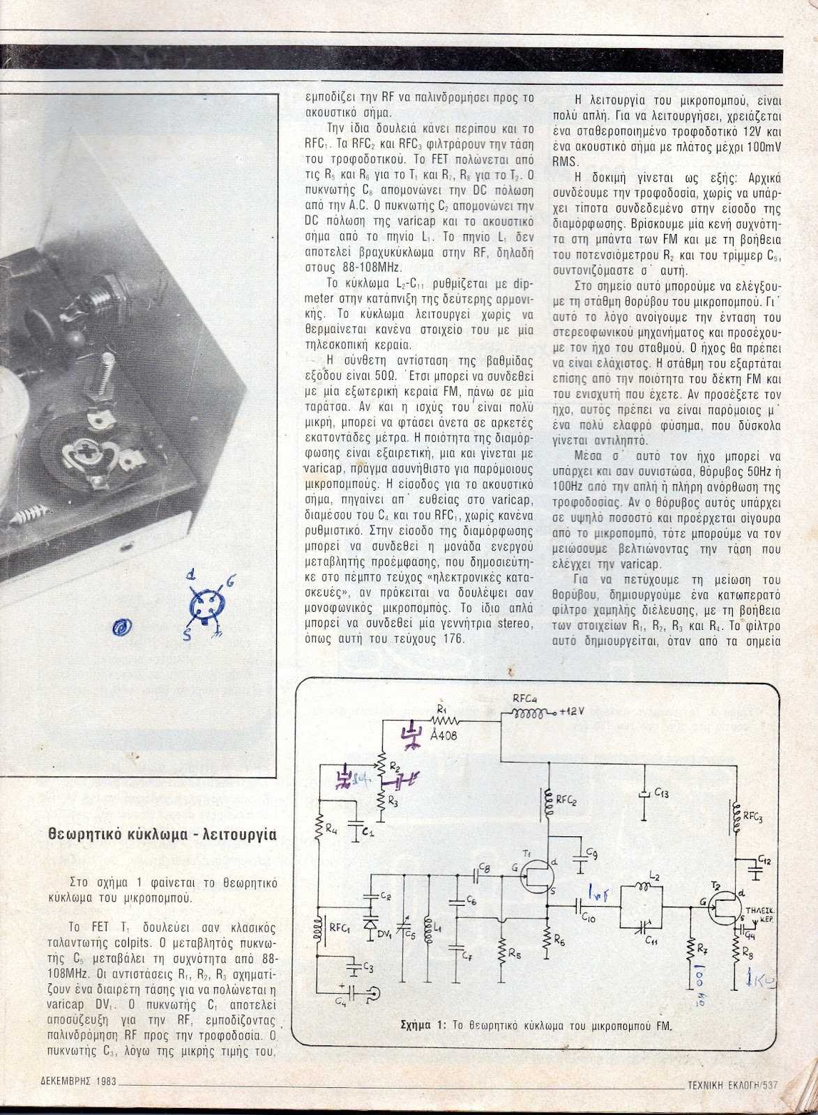 4) Στο pin12 του CD4046BE η αντίσταση να γίνει 10ΚΩ από 470ΚΩ που είναι στο τυπωμένο, γιατί συνήθως βγάζει σφύριγμα στο σήμα.