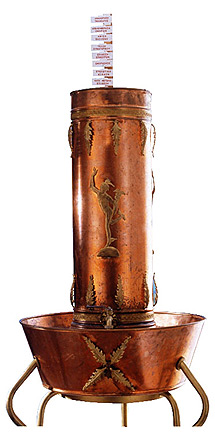 Ήταν ένας χάλκινος κύλινδρος που είχε νερό στη βάση του. Εκεί επέπλεε ένας μεγάλος φελλός. Πάνω στον κύλινδρο ήταν στηριγμένα σε όρθια θέση τα «έτοιμα μηνύματα». Στο κάτω μέρος υπήρχε μια μικρή βρύση, ένας κρουνός όπως λεγόταν εκείνη την εποχή, ενώ γύρω γύρω υπήρχε μια λεκάνη. Μια ίδια συσκευή υπήρχε και στην απέναντι πλευρά όπου πήγαινε το μήνυμα.Έτσι, γινόταν εφικτή η επικοινωνία ανάμεσα στον πομπό και τον δέκτη. Αντίστοιχα, και στις δυο πλευρές υπήρχε από ένας χειριστής.